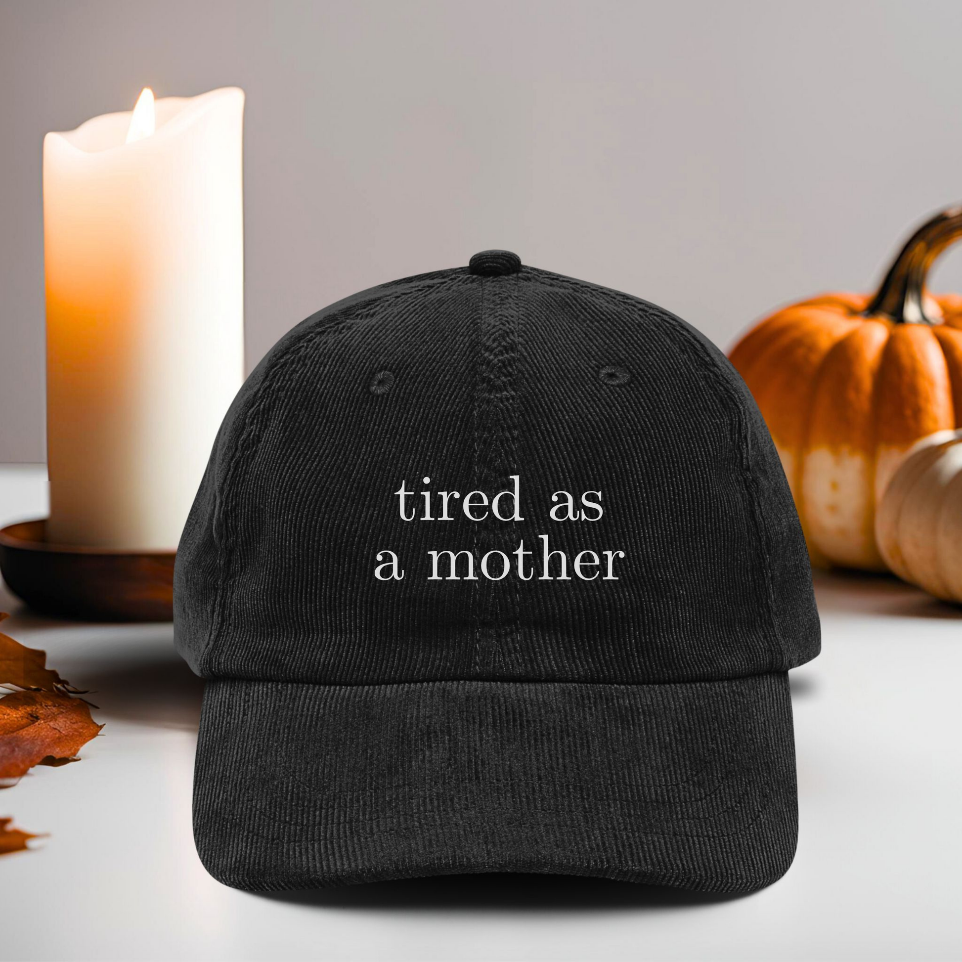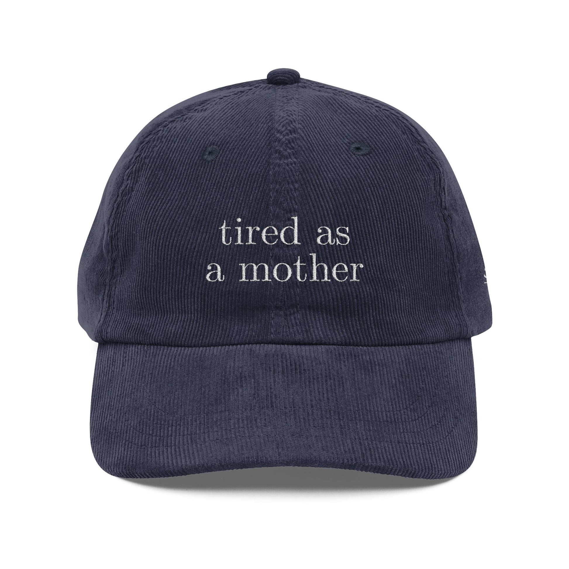 Embroidered tired as a mother Vintage Corduroy Cap, One Size Fits Most, Trendy Embroidered Cap